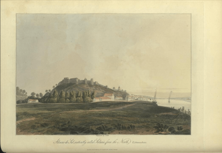 Alcácer do Sal – George Landmann, Historical, Militar and Picturesque Observations on Portugal, T. Cadell and W. Davies (impr.) Londres, 1818, Biblioteca Nacional de Portugal.
