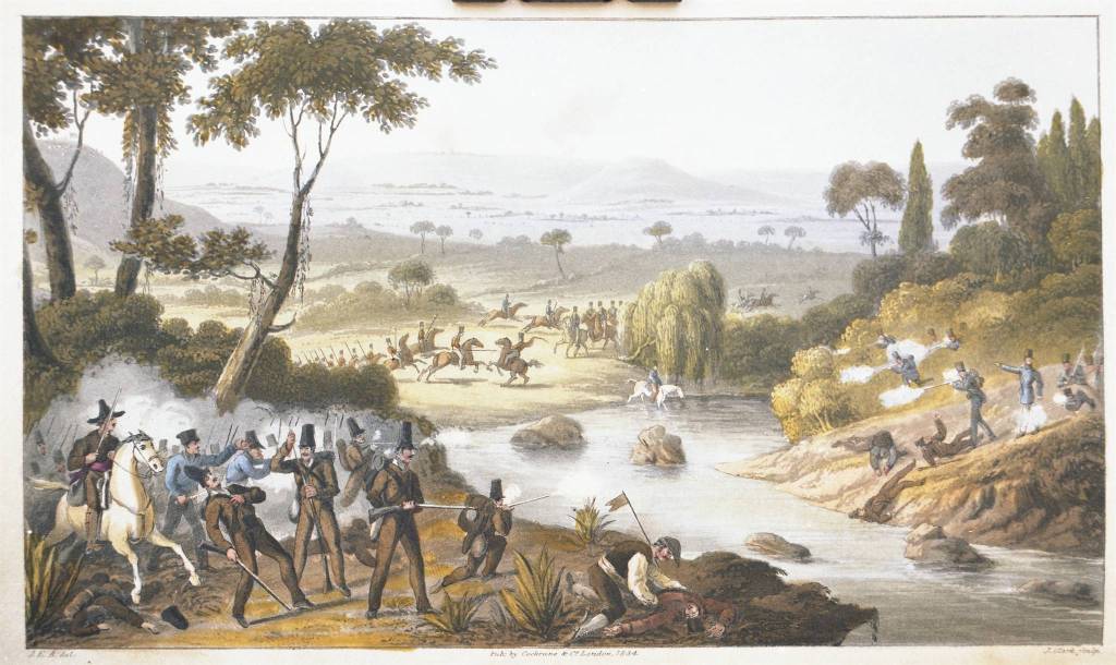 Batalha de Santarém que põe fim à Guerra Civil entre liberais e miguelistas, 1834, Reprodução da Livraria Duarte de Sousa sobre gravura, Arquivo Municipal de Lisboa, PT/AMLSB/CMLSBAH/PCSP/004/NEG/02/N82310.